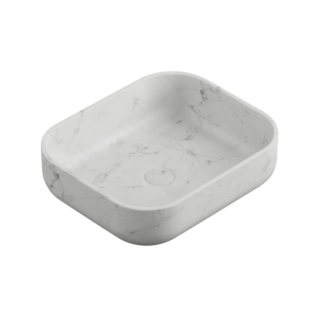 Each piece is unique and unrepeatable, as the veins in the marble are distributed organically, giving the washbasin an exclusive personality. The polished finish enhances the depth of the material and offers a silky surface to the touch, subtly reflecting light and enhancing the luxurious feel of the space.