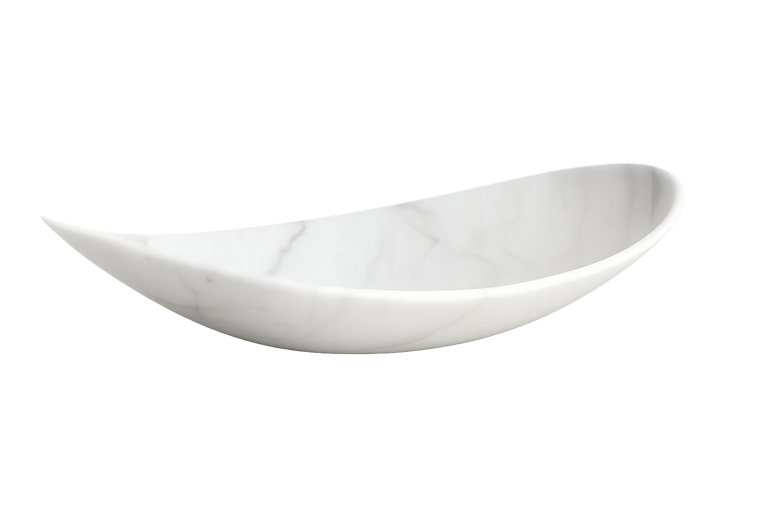 AURA is a centerpiece designed as a sculptural piece, hand-carved from natural white marble. Its organic and elegant silhouette, gently asymmetrical, brings visual lightness and sophistication, making it the focal point of any space.